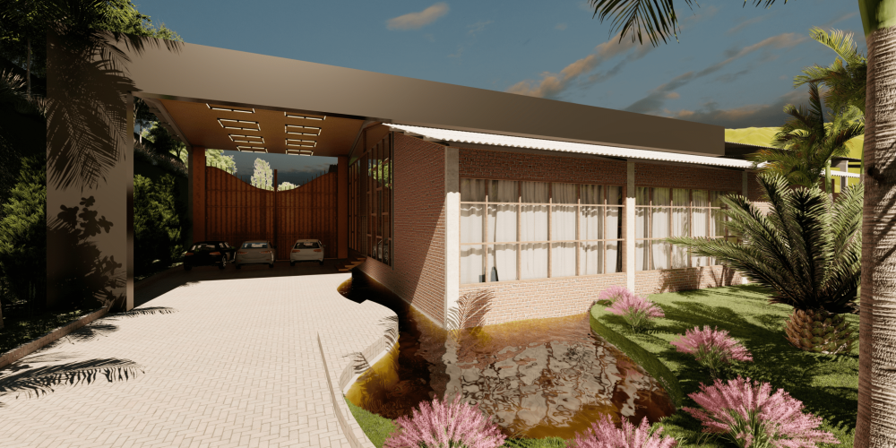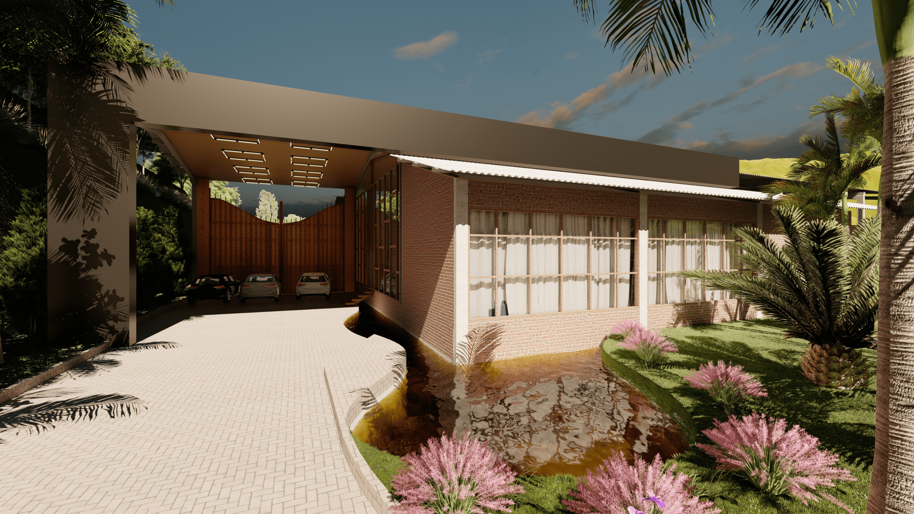Na parte externa, um espelho d’água e jardins cuidadosamente planejados complementam o visual, criando um cenário tranquilo e convidativo. O amplo pátio de entrada e o estacionamento coberto são exemplos da atenção aos detalhes e ao conforto dos visitantes.
