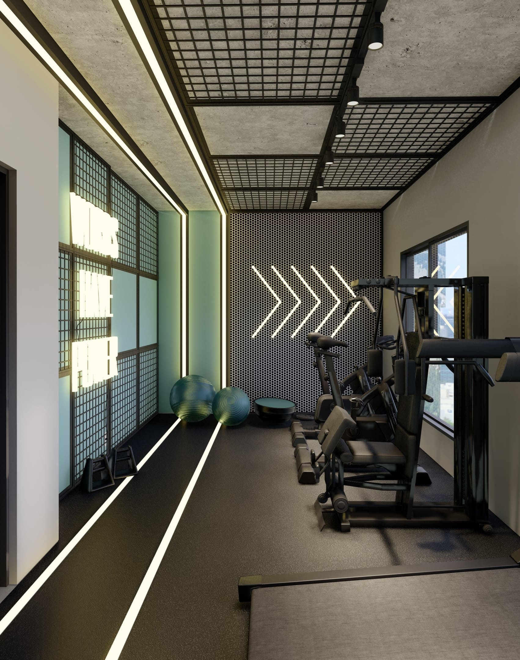 Localizada no rooftop de um edifício residencial, a nossa academia é a combinação perfeita entre modernidade e exclusividade. Projetada para quem busca um estilo de vida saudável com um toque de sofisticação, ela oferece uma experiência única de treino, cercada por uma vista panorâmica incrível da cidade.