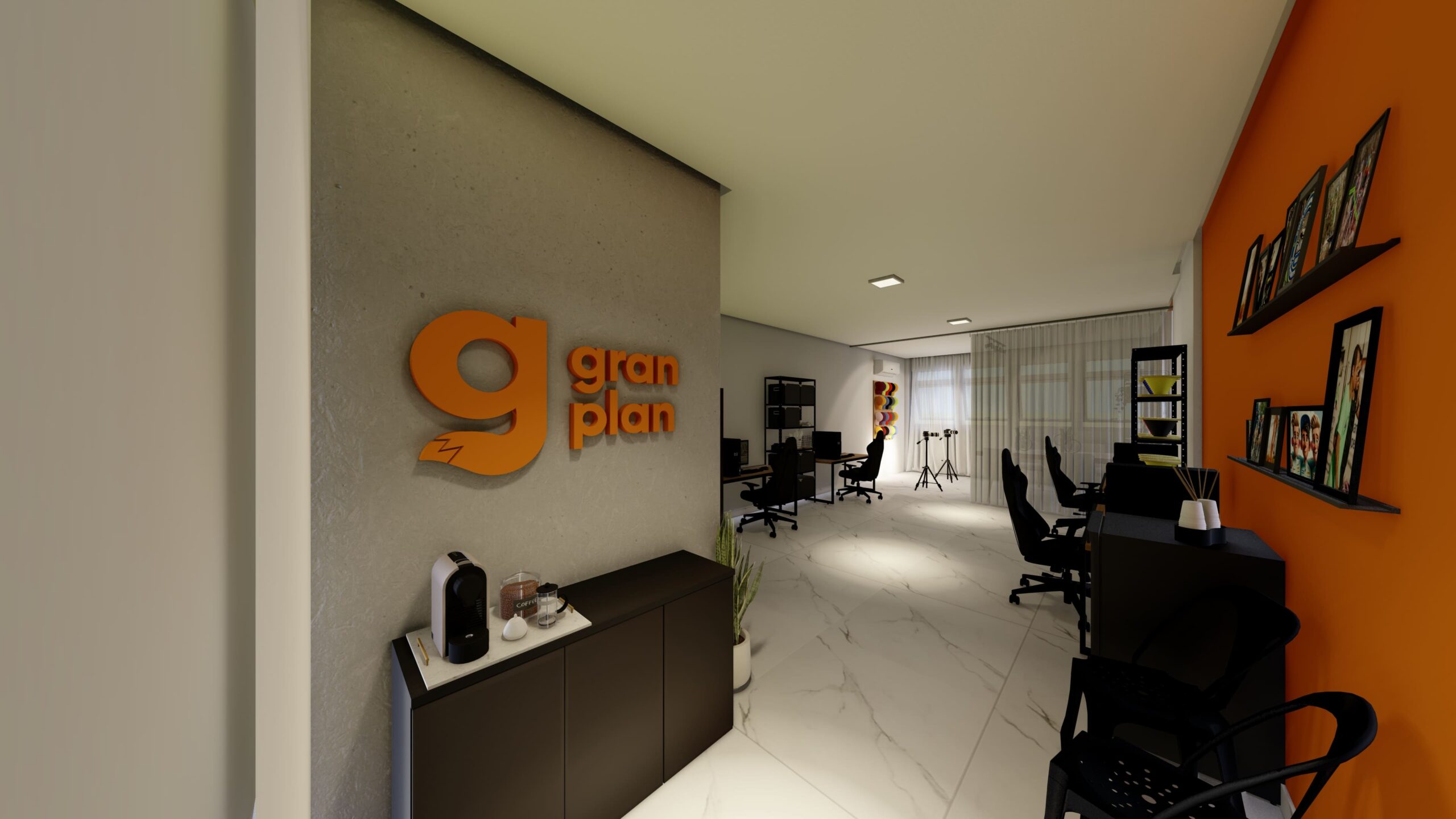 O estúdio da agência GranPlan foi projetado para oferecer um ambiente moderno, funcional e versátil, ideal para a criação de conteúdos audiovisuais de alta qualidade. Com um design que une sofisticação e praticidade, o espaço foi cuidadosamente pensado para atender às necessidades de uma equipe criativa que busca inovação e eficiência em cada projeto.